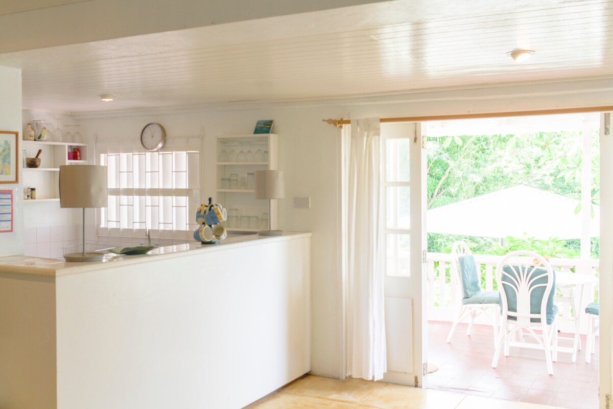 Provision House ligger rett over veien fra vakre Lower Bay Beach OG over den herlige og deilige Provision Restaurant, og er det perfekte stedet for din uformelle, avslappede karibiske ferie. Vi tilbyr deg kjølig bris, et åpent oppholdsrom, et komplett kjøkken og enkel tilgang til den beste stranden på Bequia! Dette stedet er flott for to personer eller to par, et par og venner som ikke har noe imot å dele et rom, eller en familie med barn (men dette stedet er IKKE barnesikkert).