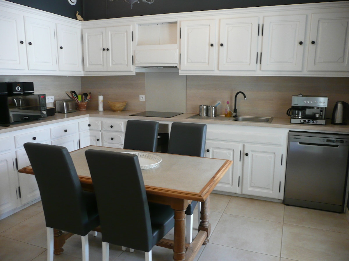 Villa med oppvarmet basseng fra mai til midten av oktober ved foten av Mont Ventoux. Ideelt for familier og syklister. Det ligger i et rolig boligområde og har en stor, inngjerdet hage på 1 500 m², perfekt for å slappe av i fullstendig ro. Du kan også nyte en terrasse med en pergola for å spise i skyggen. Det romslige og godt innredede huset har tre soverom utstyrt med takvifter i første etasje og en hovedsuite med klimaanlegg ovenpå, med bad og toalett.