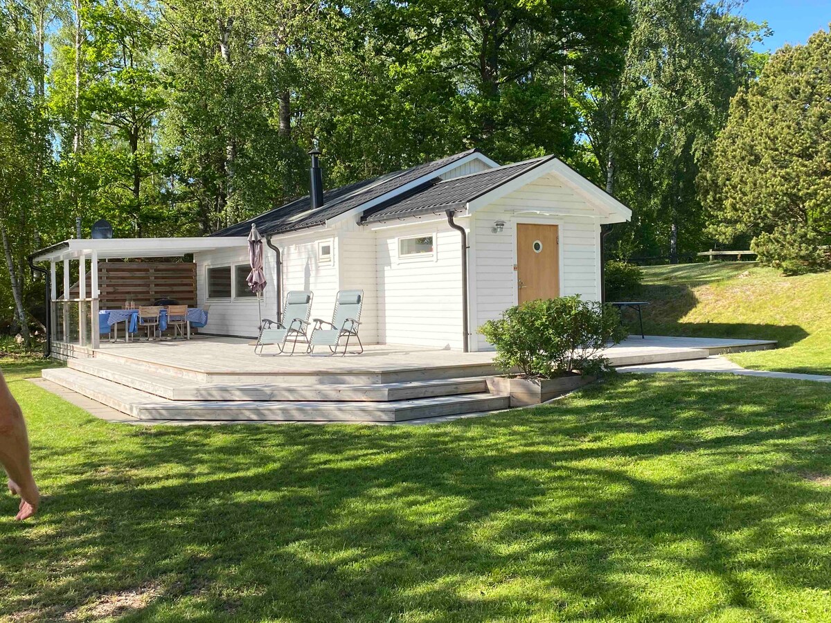 Hus ved innsjø: nylig renovert 75 kvm hjem med moderne fasiliteter (ingen oppvaskmaskin), koselig peis og klimaanlegg. Komplett med en båt, sykler og en vedfyrt sauna. En sjelden perle av tilbaketrukkethet: Opplev det ultimate i fred og ro, en rolig skjønnhet av svensk liv ved innsjøen – slå opp et telt ved vannkanten for en autentisk forbindelse til naturen. Ideelt for fiskeentusiaster. Beliggenheten og huset tilbyr en virkelig uforglemmelig svensk opplevelse ved innsjøen.