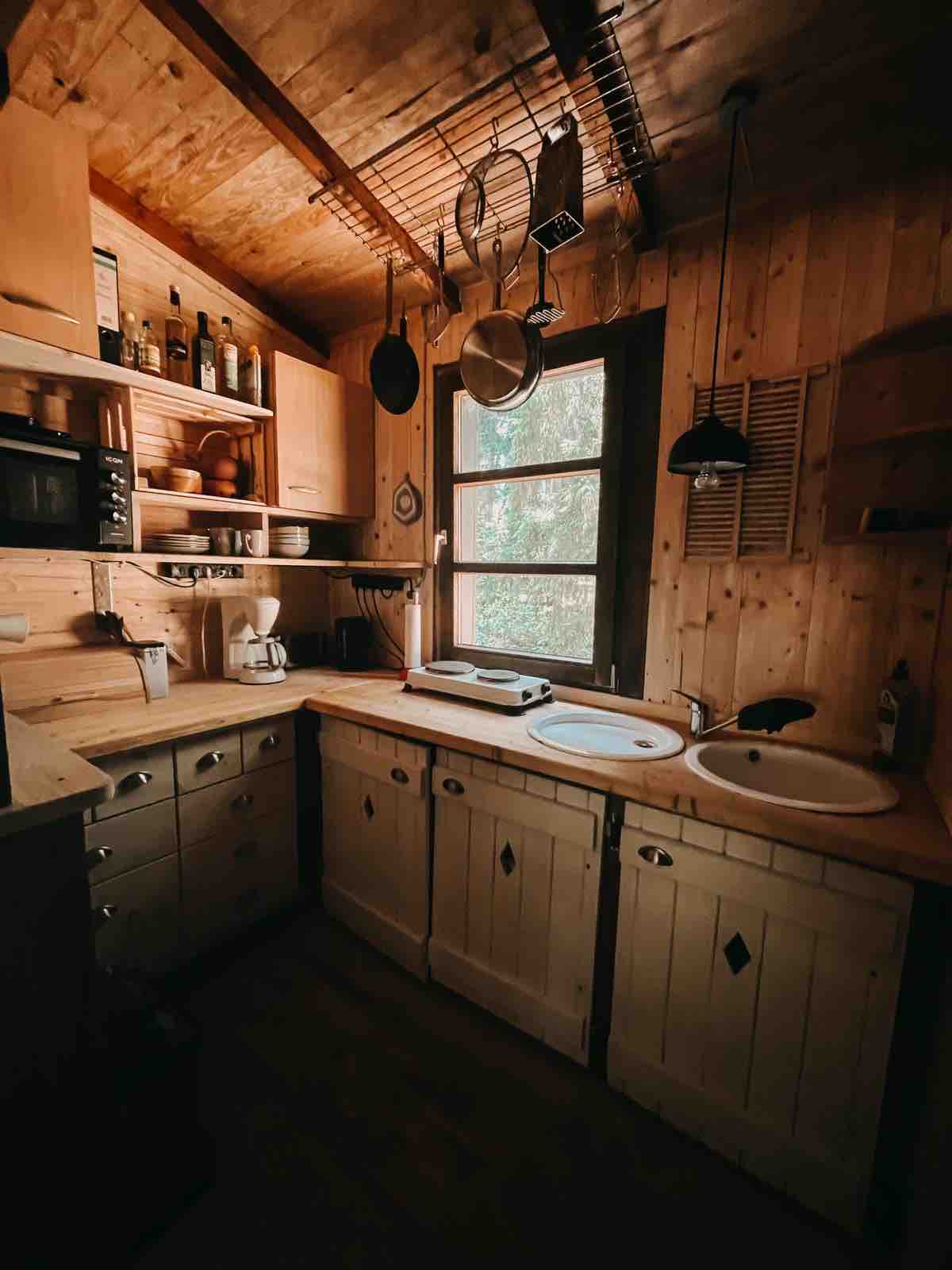 NYHET: Rett ved siden av «Mono» står et annet hus, «Nest im Wald». Du kan også besøke det. Eller begge deler ... "Mono" er en campingvogn som ble bygget for flere tiår siden. I løpet av en totalrenovering i 2020 fikk den et tømmerrammeskjelett (nytt tak, ny isolasjon osv.) og dermed en første etasje. Størrelse: 3,20 ganger 13 meter. Den heter "Mono" fordi utsiden, så vel som hvert rom på innsiden, hovedsakelig er dominert av én farge.