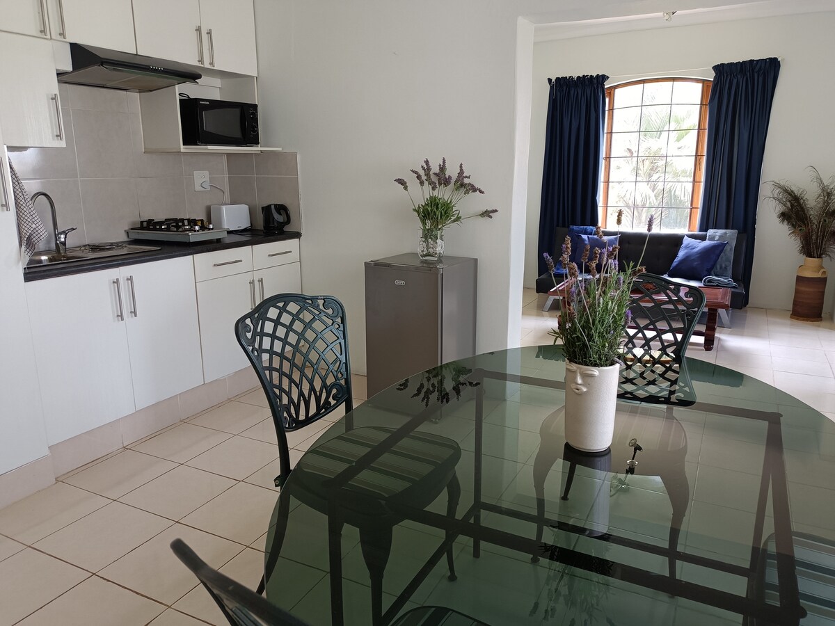 Baobab-suiten med selvhushold har plass til to personer. Opplev ro i Baobab-suiten vår, perfekt for alle reisende. Nyt en egen inngang, åpen stue, fullt kjøkken, arbeidsstasjon og gratis trådløst nettverk. Slapp av i det moderne soverommet med en queensize-seng og eget bad. Suiten har utsikt over frodige hager og et vakkert basseng. Inkluderer gratis parkering og en smart-TV. I nærheten av attraksjoner, spisesteder, naturreservater og shopping. Perfekt for avslapning eller et produktivt opphold.