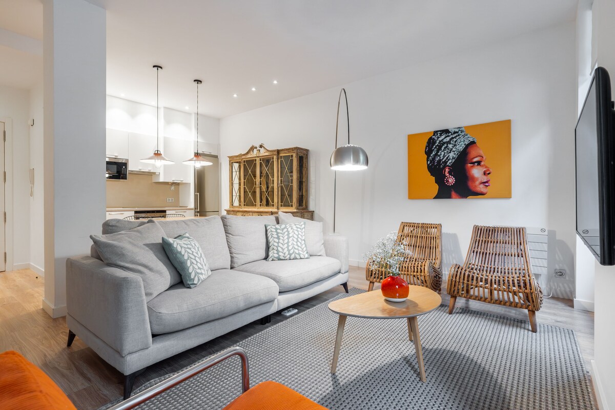 Denne nye leiligheten med ett soverom, kingsize-seng og sovesofa (144 x 180 cm) har en urban og koselig stil, og ligger i hjertet av Gros-distriktet, ett minutts gange fra sentrum. Nylig renovert og feilfritt, med aircondition, 55" TV, Wi-Fi, Nespresso. Fullt utstyrt for barn og babyer. Perfekt plassert 2 minutter fra buss- og togstasjonen, samt ved siden av en direkte bussholdeplass til San Sebastián flyplass.
