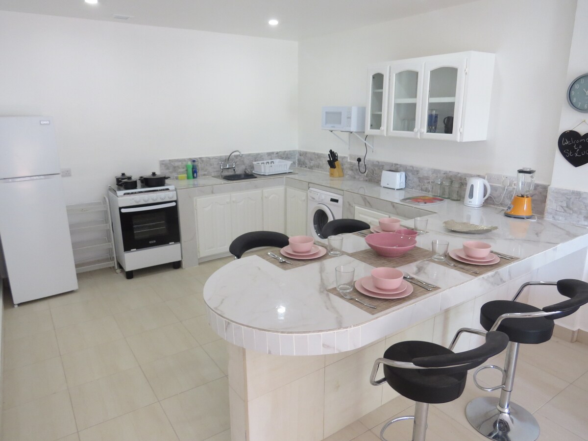 Vi venter på deg og familien din til dette unike hjemmet hjemmefra. Leiligheten har et kjøkken som kan brukes til å tilberede disse solide familiemåltidene. Vi ligger innenfor få minutter travle Rodney Bay, som inneholder supermarkeder, restauranter, kjøpesentre, banker, hoteller, strender og et spennende natteliv.