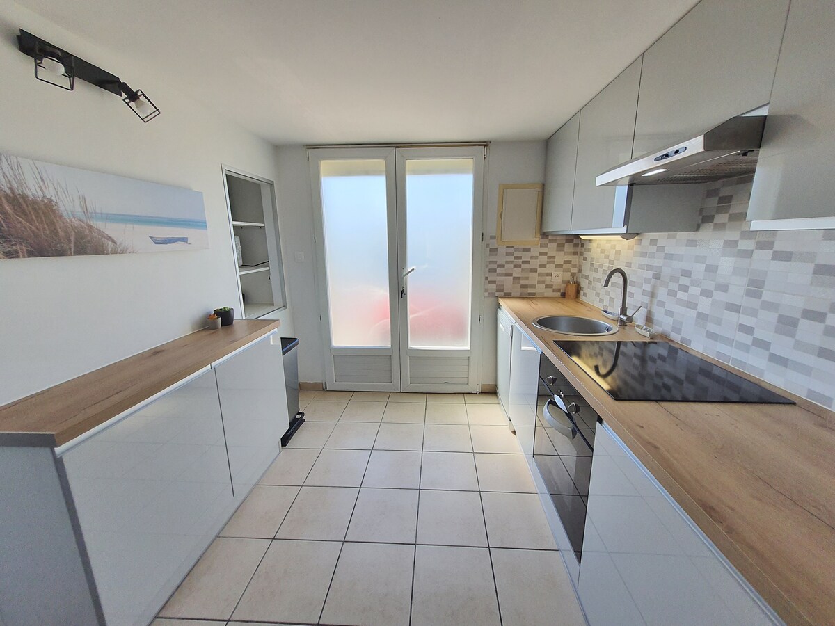 Lite landsbyhus, varmt og komfortabelt, beliggende i hjertet av den gamle landsbyen Gruissan, i et fint område, i nærheten av mange butikker og turiststeder. Består av en liten stue, fullt utstyrt kjøkken (med vaskemaskin og oppvaskmaskin) med 2 soverom (140x160 senger), 2 bad (dusjer) og 2 separate toaletter. TV & Wifi! Ingen Clim = vifte. Plage des chalets to km unna. Valg av gebyr: rengjøring + sengetøy (€ 60), rengjøring alene (€ 40), sengetøy alene (€ 20).