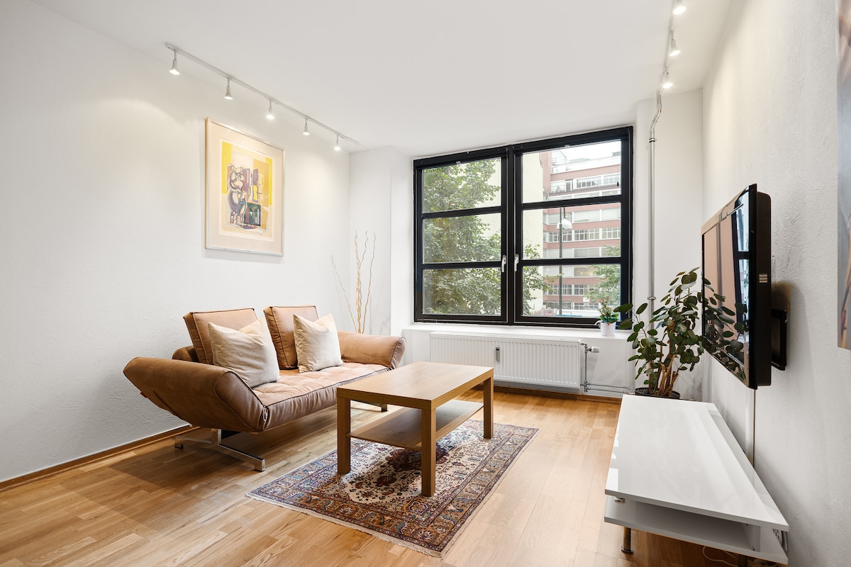 Fabrikkleilighet sentralt, balkong og takterrasse
