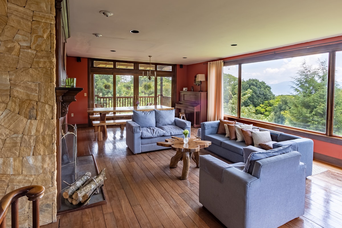 Casa Los Cielos er elegant, men rustikk, med vakkert costaricansk treverk overalt. Alle rommene har fantastisk utsikt, inkludert San Jose-dalen og fjellet rundt. Det ligger i et kjølig (78F), fredelig fjellområde, og er perfekt for familier, ferier eller vennegjenger. Nyt skorsteinen, bålplassen, grillen og hestene i nabolaget. Kjæledyr er velkomne! - 20 minutter fra sentrum av San Jose - 50 minutters kjøring til Int'l lufthavn. - 1 time og 45 meter fra strand - 5 minutters kjøring til restauranter, butikker.