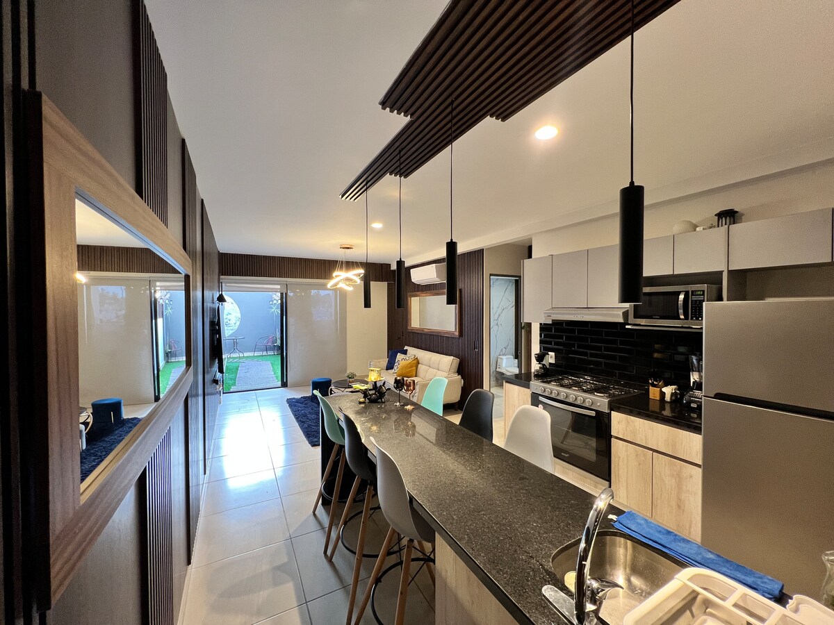 Velkommen til vårt moderne loft i Yu Country, Guadalajara! Nyt et elegant og komfortabelt sted, ideelt for forretnings- eller fritidsopphold. Bare noen skritt fra finansdistriktet og Av. Sao Paulo, du vil være i nærheten av de beste restaurantene, kjøpesentrene og utelivet. Loftsleiligheten har høyhastighets wifi, utstyrt kjøkken og privat parkering. Perfekt for å slappe av etter en produktiv dag i byen. Bestill nå og opplev Guadalajara til det fulle!