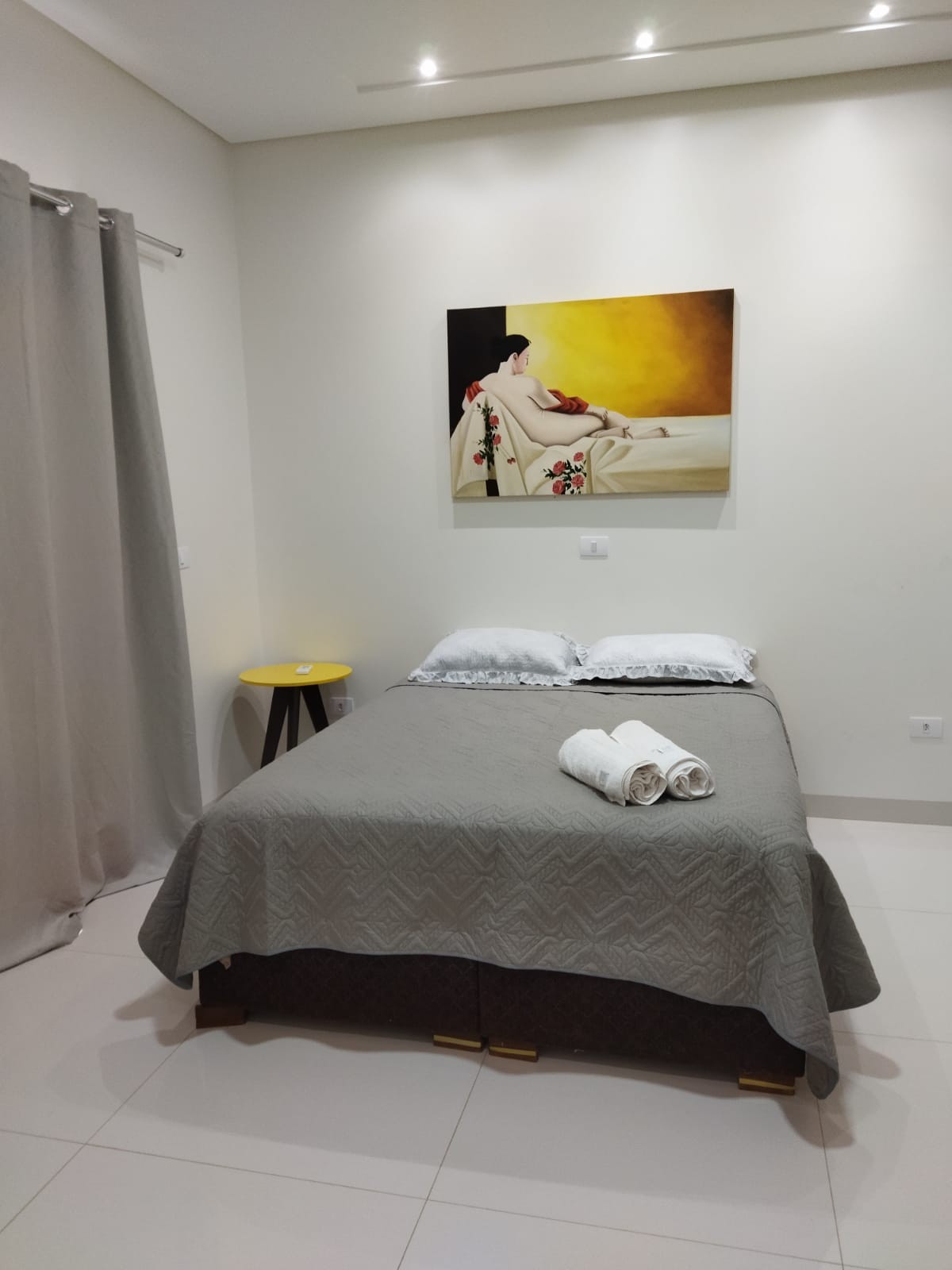 Bo komfortabelt i Guaíra sentrum i vårt koselige rom som har følgende fasiliteter: – dobbeltseng med elektrisk massasjeapparat - Aircondition – 50'' smart-TV - Wi-Fi – induksjonskomfyr med to plater - mikrobølgeovn – rom med bad Stedet er adskilt fra resten av huset, og kun gjester har tilgang under oppholdet. Verten bor på baksiden av huset. Hvis du trenger det, er det plass i garasjen til å sette bilen under oppholdet.