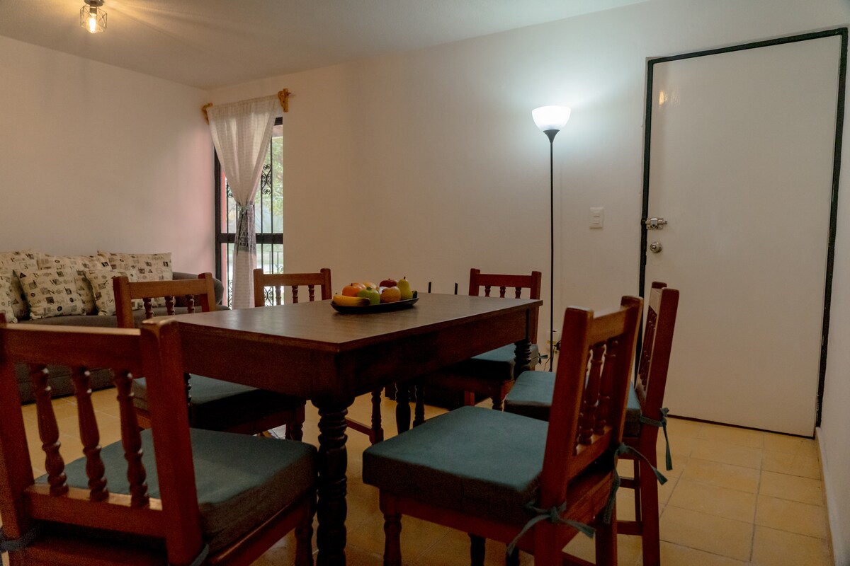 Leiligheten har moderne innredning i meksikansk stil, noe som skaper en avslappende atmosfære. Det ligger i sentrum av Guanajuato. Det er et koselig sted med en spisestue som inkluderer en sovesofa og en 50-tommers TV med Roku, et kjøkken utstyrt med en komfyr, en vask, en minibar, en ovn og en kaffemaskin. Soverom med to dobbeltsenger, bad, innendørs hage og servicepatio. Tilbyr: trådløst nettverk, kabel-TV, MAX og PARKERING INKLUDERT FOR ÉN MELLOMSTOR eller LITEN BIL: maksimalt 4,70 m x 1,85 m (L x H).