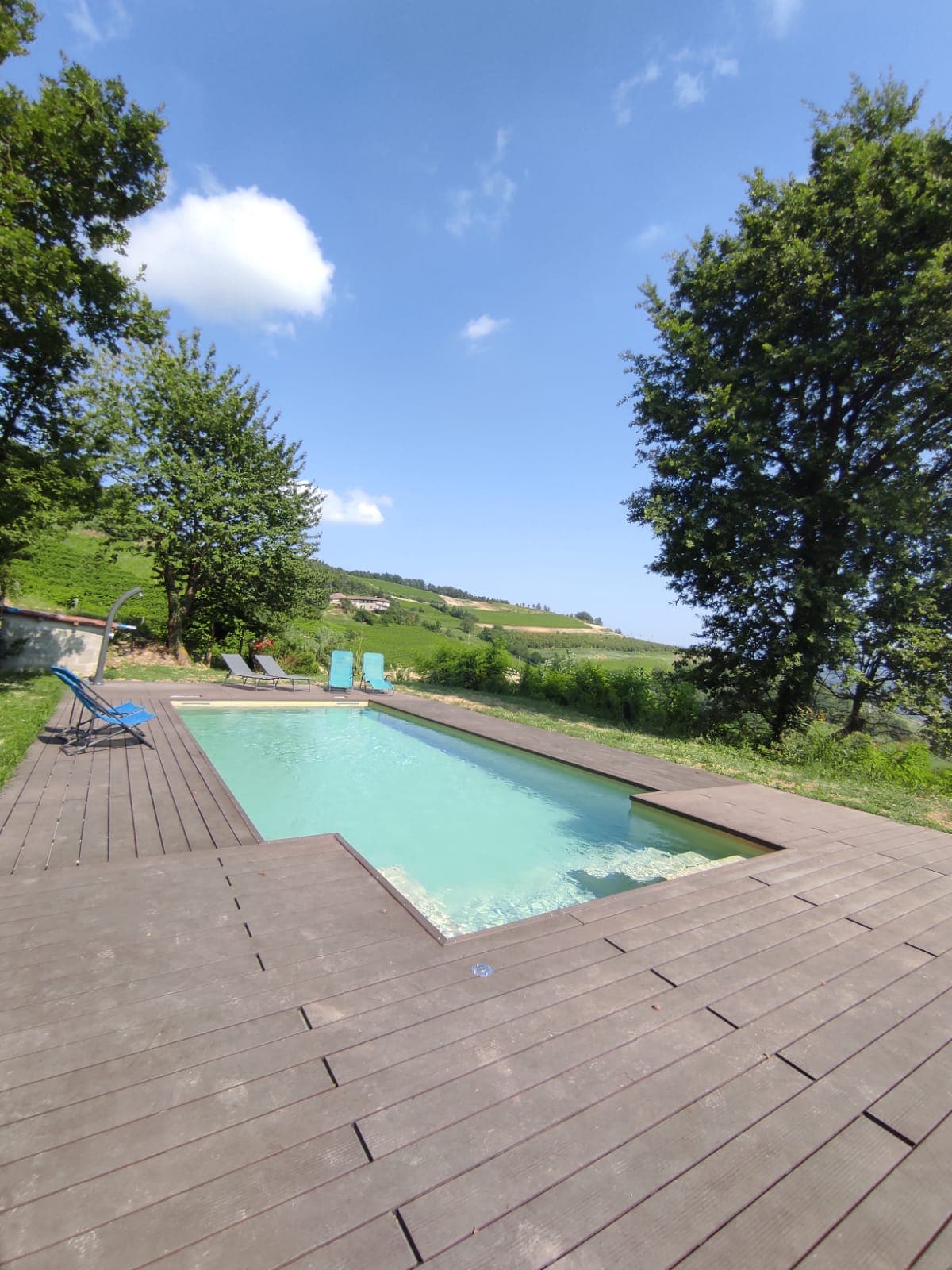 Et hemmelig hjørne blant åsene i Langhe, hvor det grønne omfavner hver detalj: to koselige leiligheter (for 8 og 4 personer), et panoramisk svømmebasseng med en av de beste utsiktene i regionen, og den diskré, men oppmerksomme tilstedeværelsen av familien min, i bygningen ved siden av. Jeg er en turguide, og drømmen min er å guide deg blant de skjulte perlene i området. 1 km fra Treiso og 10 minutter fra Alba: komfort, natur og autentisitet venter deg. Benvenuto til Langhe.