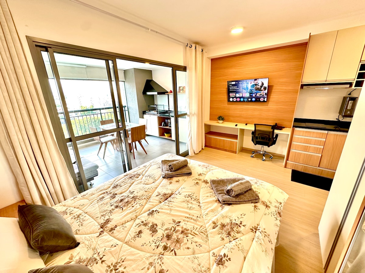 Utmerket studio i Guarulhos! Rett ved avkjørselen fra Dutra. Ligger i sentrum av Guarulhos, 15 minutter fra flyplassen og 25 minutter fra São Paulo. Studioet har fullt utstyrt kjøkken i tillegg til Nespresso-maskin, blender og filter. Det har også hjemmekontorplass slik at du kan jobbe i fred. På soverommet er det garderobe, queen size-seng og alt av sengetøy. Ny bygning med parkering, svømmebasseng, treningsstudio, vaskeri, møterom og dørmann døgnet rundt.