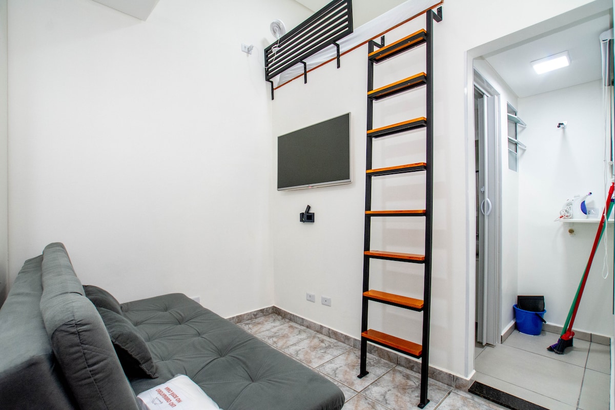 Komplett studio med kjøkken med utstyr, toalett, skap, kjøleskap, TV, vifte, dampstrykejern, tørketrommel, sovesofa, hengende seng på 1,88 x 1,38, trenger å gå opp trapper og trådløst nettverk. Vi har parkeringsplass (ikke inkludert – separat kostnad) og et eksternt røykeområde. Vi har sengetøy og håndklær. BELIGGENHET – nær den internasjonale flyplassen og togstasjonen, butikker som er lett tilgjengelige til fots, som apotek, butikker, markeder, restauranter, banker, SESC Guarulhos osv.