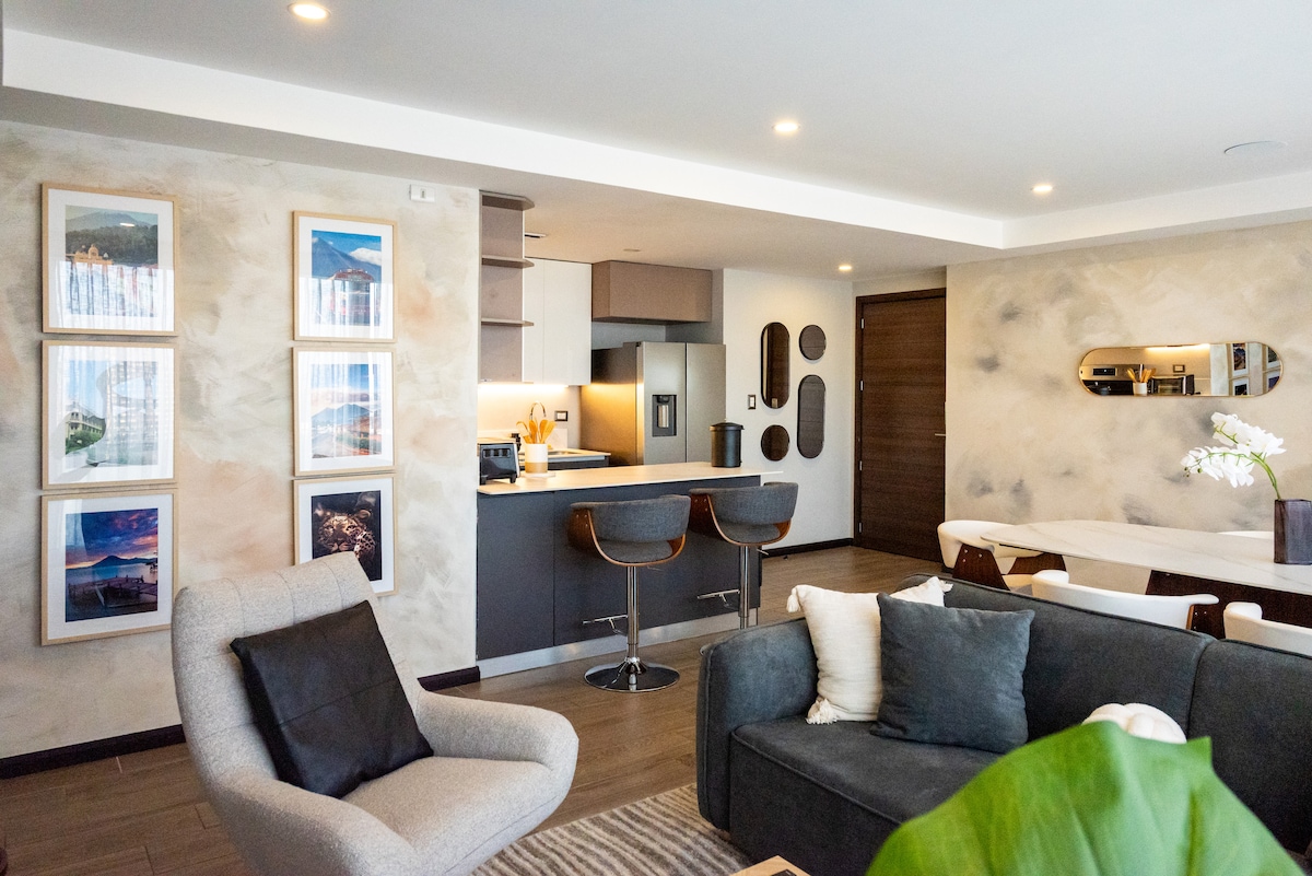 Enjoy a beautifully located apartment in Guatemala City. H Group Residences presents its new “Safari” apartment in a brand-new building facing the majestic volcanoes (Agua, Fuego, Pacaya) and only 10 minutes from the airport. Every detail has been carefully designed to create a warm and enjoyable stay. Browse the photos and imagine yourself unwinding in this charming and inspiring space.