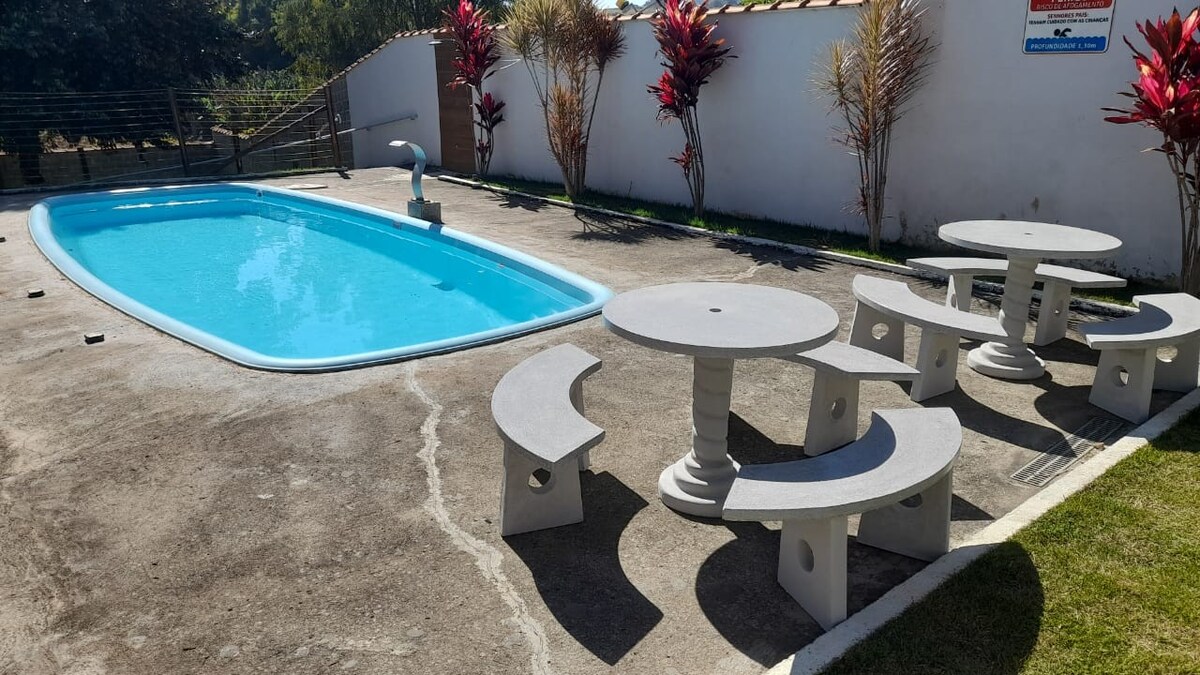 Hvis du drømmer om et rolig sted, omgitt av grønne områder, med en bygning du kan nyte og hvile i … har du funnet det! Chácara Paraíso tilbyr mer enn 400 m² bebygd areal, en frukthage å slappe av i, et reservoar for sportsfiske og et fantastisk svømmebasseng å kose seg i. Tell med: Tre soverom (ett med eget bad) Stue og kjøkkenkrok Senger og madrasser for opptil åtte personer Kjøkken utstyrt med kjøleskap, komfyr og redskaper. Grill Et sted å oppleve gode stunder og lade batteriene.