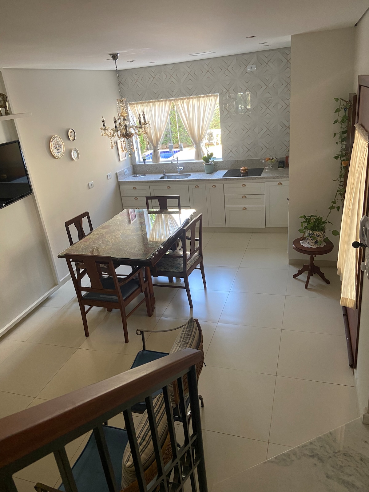 Det neoklassiske huset gir et annerledes og koselig opphold i byen Guaxupe-MG. Det ligger i hjertet av Guaxupe, nøyaktig på katedralplassen, i nærheten av restauranter, kaffebarer, snackbarer og frisørsalonger, og du kan komme deg rundt til fots. Coném – To bad, ett med en kingsize-seng (som kan omdannes til to enkeltsenger) og et annet med to enkeltsenger og en romslig spisestue. – Garasje som kan brukes som en forlengelse av kjøkkenet, med en nydelig sofa og planter. Plass til opptil fire biler.