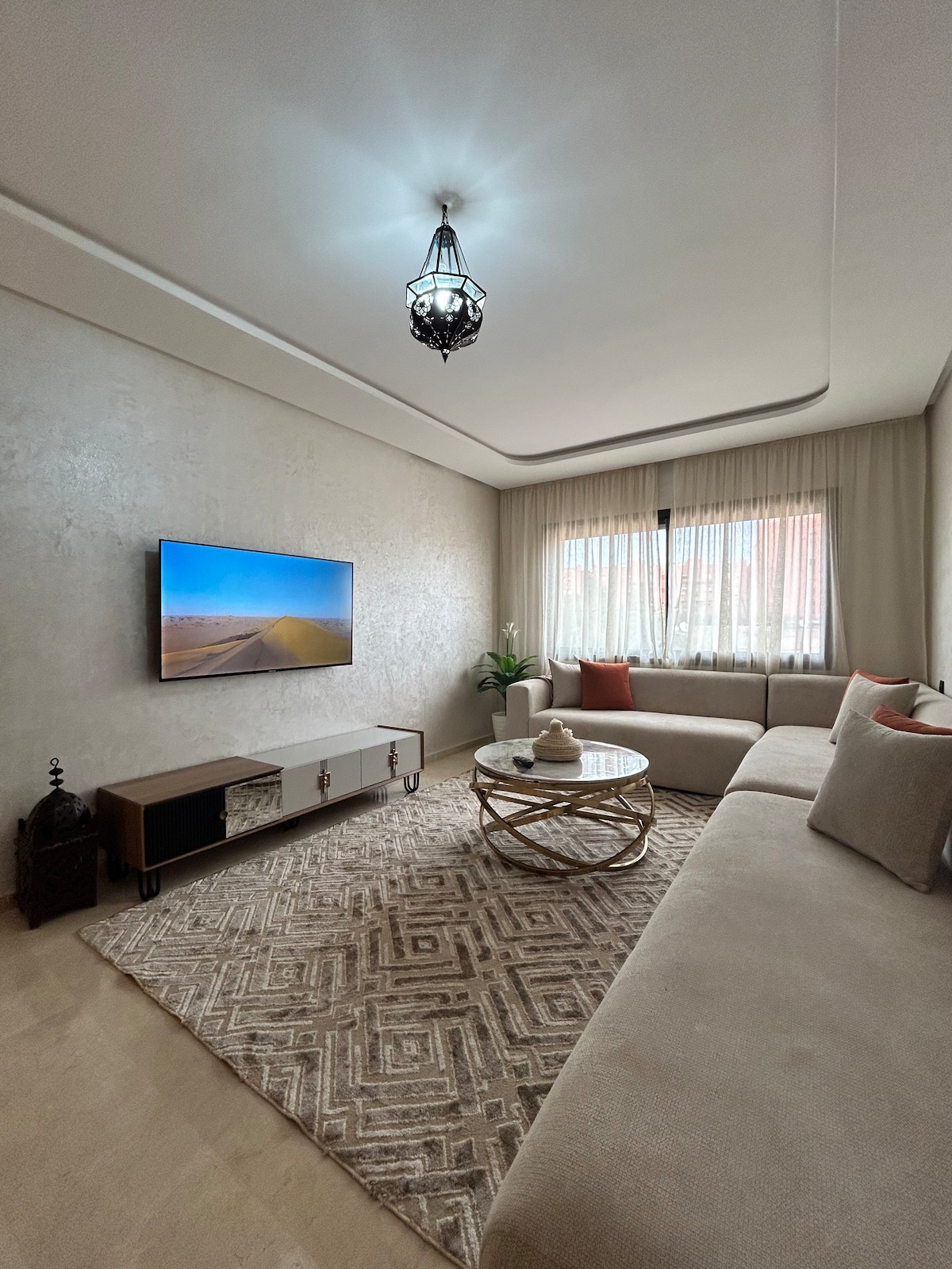 Leiligheten vår ligger praktisk til i sentrum av Marrakech. Togstasjonen, mange kafeer, restauranter, dagligvarebutikker og supermarkeder ligger alle innenfor gangavstand. Flyplassen ligger bare 12 minutter unna med bil, noe som gjør den ideell for reisende. • Eiendommen tilbyr trådløst nettverk med høy hastighet, Netflix og IPTV, klimaanlegg, innendørs basseng, treningssenter, privat, overdekket parkering og sikkerhet og overvåking døgnet rundt.