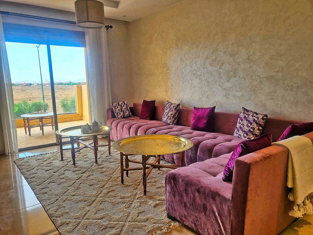 Découvrez un appartement d’exception alliant élégance contemporaine et charme marocain. Situé dans un cadre privilégié, on vous offre une expérience unique, pensée pour les voyageurs en quête de confort, de calme et de raffinement. Profitez d’un espace lumineux, décoré avec goût et d’un cadre apaisant. Chaque détail a été conçu pour vous offrir un séjour inoubliable, entre modernité et tradition. Idéal pour un séjour romantique, un voyage d’affaires ou des vacances familiale à Marrakech.