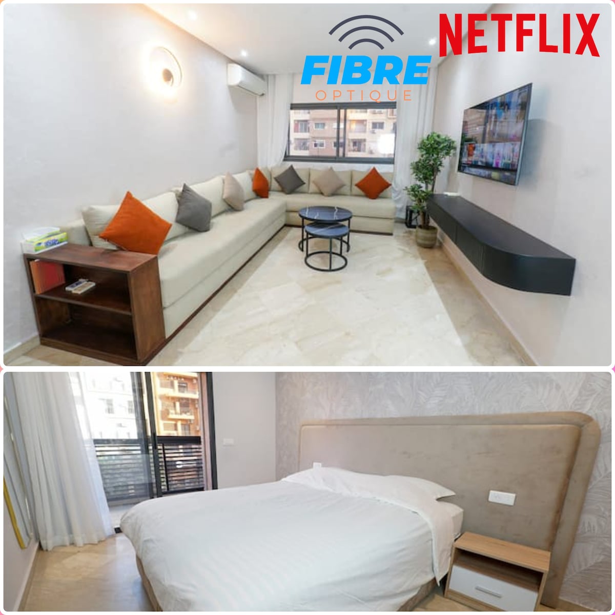 Velkommen til den gjennomtenkte leiligheten vår med ett soverom og basseng, hvor positiv energi strømmer gjennom hver centimeter. I sentrum av Gueliz, ti minutters gange fra Carré Eden og fem minutter fra togstasjonen. Perfekt plassert, du vil være omgitt av en rekke restauranter, kafeer og butikker. Velutstyrt, vi har tatt oss av alle detaljene, høyhastighets internett, IP-TV, Netflix, sikrer en sømløs opplevelse og gjør oppholdet ditt stressfritt.