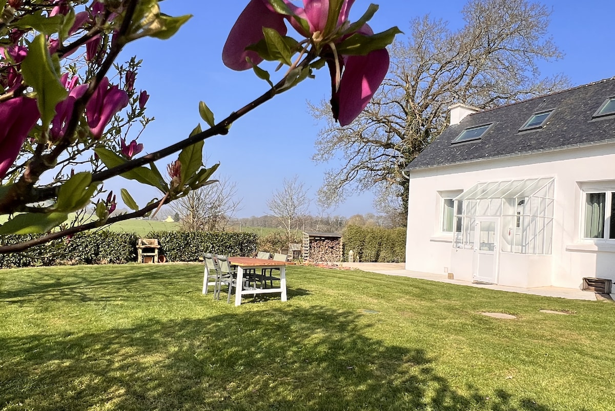 Avhengig av en nyrenovert gård fra det 19. århundre, omgjort til et frittstående hus. En unik stil i hjertet av en grønn oase, perfekt for et feriested i naturen. Liten privat hage og felles tilgang til stor hage med husdyr og kjøkkenhage. Alt ligger i en rolig landsby. 5 minutter fra matbutikker, restauranter og pannekaker 25 minutter fra strendene med bil. Turløyper i området. Dyrehage og golf i nabokommunen. 25 minutter fra Lorient.