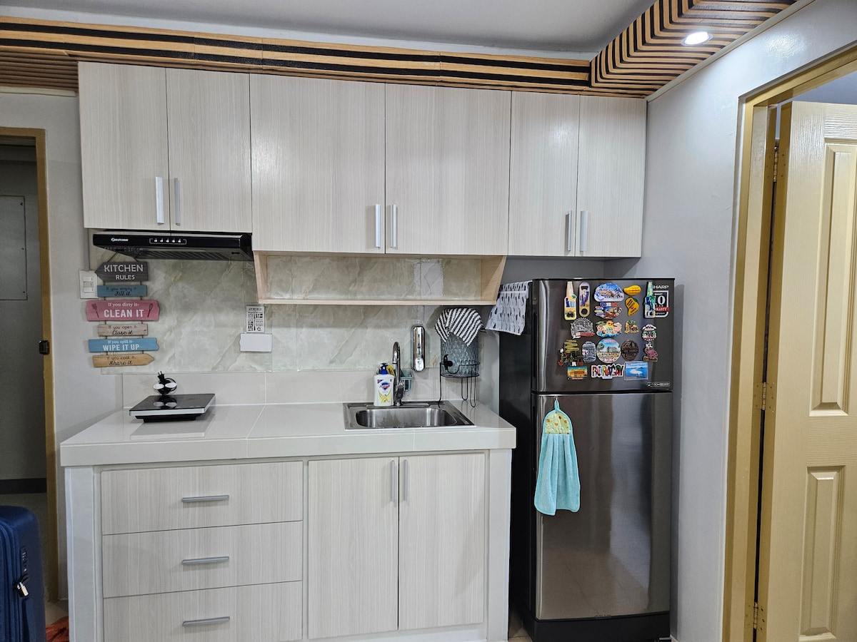 Stedet vårt ligger sentralt til med gangavstand til Atria Park Districk, Qualimed Hospital, Ateneo, Seda Hotel og S&R Shopping. Det er noen minutter fra Festive Walk, SM City, Plazuela og Smallville. Hovedsoverommet har eget toalett/bad. Det andre toalettet/badet står i stuen. Stedet har trådløst nettverk, vaskemaskin + tørketrommel, induksjonstopp, stekeovn/brødrister, mikrobølgeovn, vannkoker, 55 tommers TV og oppvarmede dusjer.