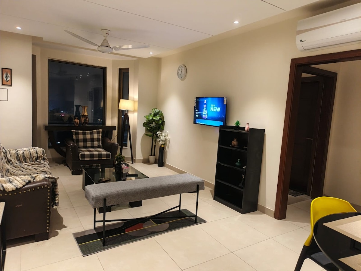 Topprangert luksuriøs og fredelig leilighet i Bahria Town i Lahore. Perfekt for familier, par og forretningsreiser. Bare noen minutter unna Eiffeltårnet, den store moskeen, de viktigste markedene og restaurantene. Du kan nyte raskt trådløst nettverk, gratis Netflix/Amazon Prime, backup-strøm, innsjekking uten vert, gratis sikker parkering, heis, fullt utstyrt kjøkken med kjøkkenutstyr, te/kaffe og mange andre fasilitilbud. Det er familievennlig med spill og lekeplass i nærheten. Rent, trygt og problemfritt opphold Bestill nå for å sikre datoene dine!