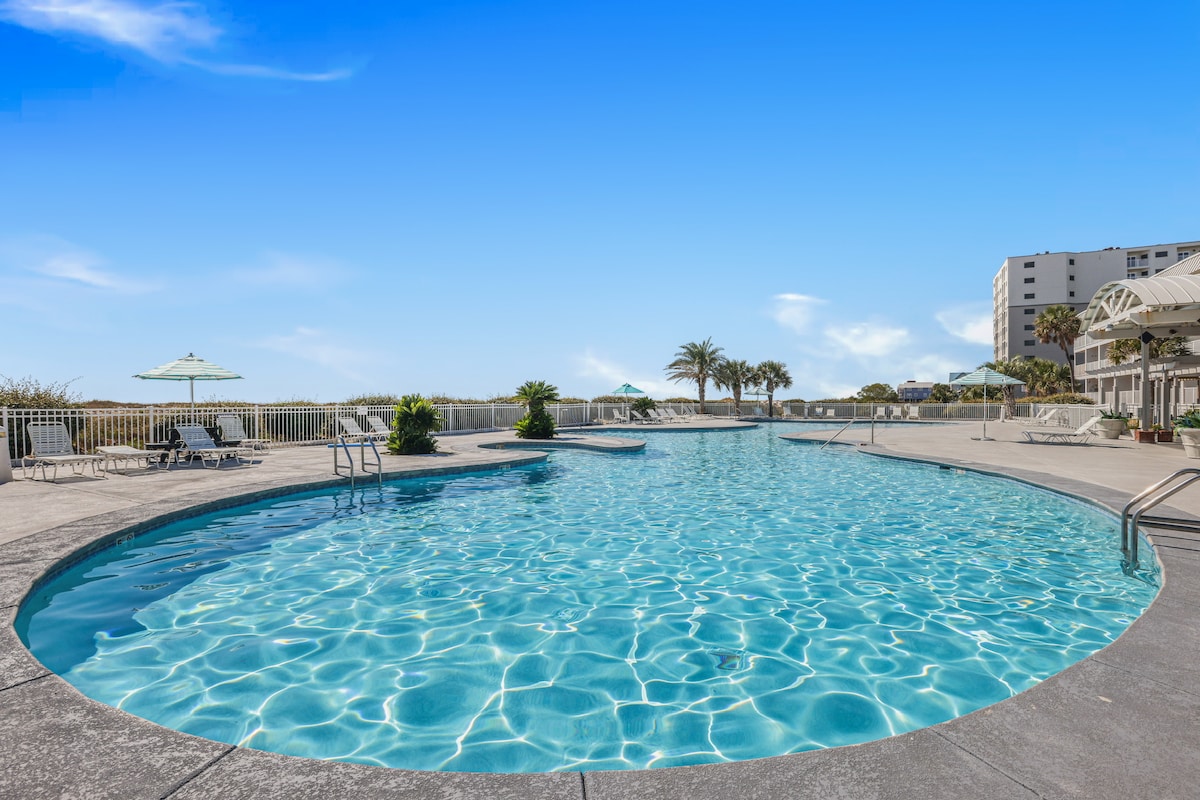 Nyt strandoppholdet ditt hos oss! Leiligheten vår tilbyr en queensize-seng i det primære soverommet, smale køyesenger i gangen, perfekt for små barn, og en queensize-sovesofa i stuen. Morgenkaffen smaker bedre på balkongen med utsikt over stranden. Kjøkkenet har oppvaskmaskin, komfyr, vanlig 12-koppers kaffekanne, noen få gryter og panner og en mikrobølgeovn. Feriestedet har mange fasiliteter, inkludert to utendørs bassenger, et innendørs basseng og boblebad, pluss et treningsrom og basketball- og tennisbaner.