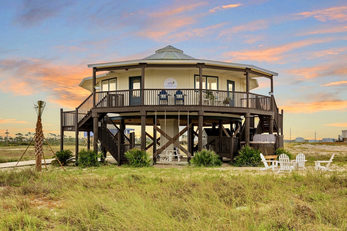 Velkommen til Golden Hour! Dette nylig renoverte feriestedet i Gulf Shores ligger bare 100 skritt fra stranden med privat, skjøtet tilgang. Nyt fantastisk utsikt over vannet fra alle soverom og fantastiske solnedganger hver kveld. 🏡 Sover 10 (maks 8 voksne) | 4 soverom | 3 bad 🍽️ Romslig kjøkken | To stuer | Omsluttende terrasse 🌊 Strandutstyr, padlebrett, kajakk med mer! Beliggende i fredelige West Beach Blvd – din perfekte kystferie