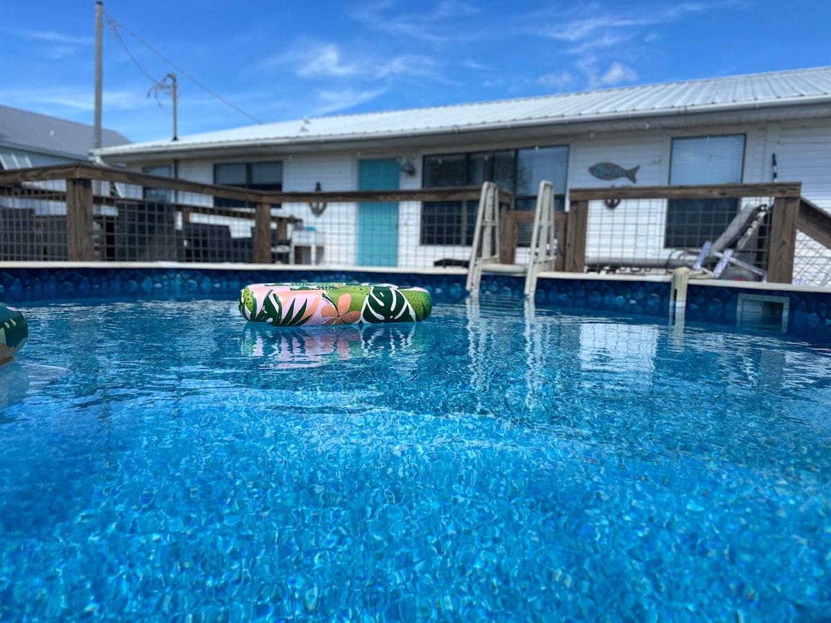 Velkommen til Tide Down! Denne sjarmerende hytta tilbyr tilgang til lagunen, en 5–10 minutters asfaltert spasertur til stranden, pluss to sykler og tre kajakker. Opptil ti sengeplasser med tre soverom, 2,5 bad, køyesenger, queensize-senger og en sovesofa. Dyrevennlig (maks 2). Vaskemaskin/tørketrommel inkludert. Startforsyninger er inkludert. Kontaktløs innsjekking. Gjester må være 22+, noen unntak kan gjøres med et depositum på 500 USD, som refunderes i sin helhet hvis det ikke oppstår skader. Rabatter for vinterboere er tilgjengelige.