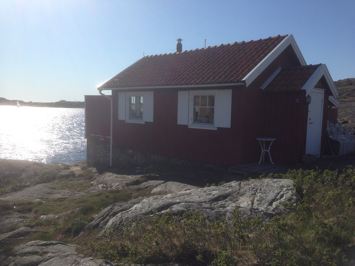174 meter fra sjøen! Svøm, fisk, gå på tur, padle, klatre, spille golf! Koselig overnatting i den lille hytta vår i Skalhamn, 10 km utenfor Lysekil. Med havet rundt hjørnet! Ta morgensvømmet, følg solnedgangen fra steinene eller i badebukten. Kjøp fersk sjømat eller hvorfor ikke fiske din egen middag! Havet gir dramatisk utsikt i all slags vær, året rundt! Fantastiske utsiktspunkter over havet fra fjellet. Nærhet til mange severdigheter langs bohuskysten. Beliggenheten kunne ikke vært mer fantastisk! Ikke glem fiskestangen!