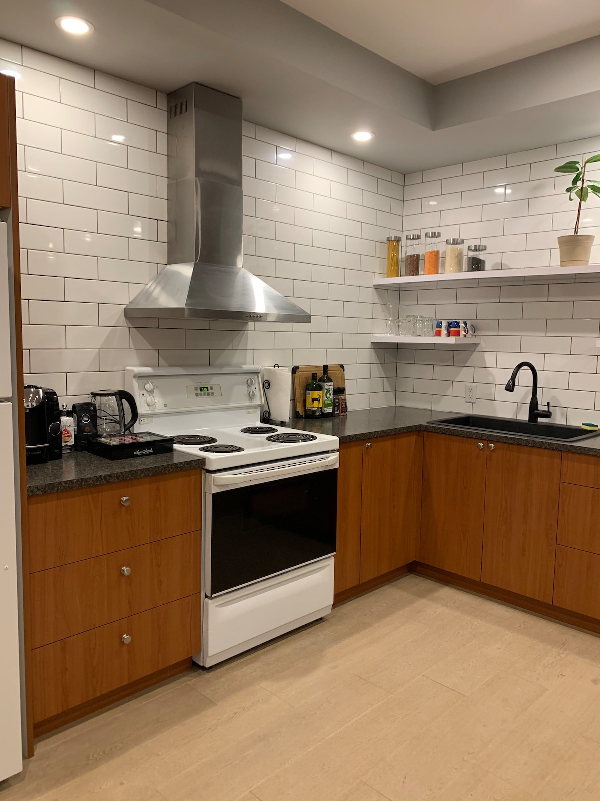 Smakfullt møblert, åpen konsept, kjellersuite med stor stue, velutstyrt kjøkken og opptil tre senger, en queensize-seng og dobbel veggseng på soverommet, også en queensize-sovesofa i stuen. Enten du reiser alene eller tar med familien, er denne suiten rolig, romslig og fullt utstyrt med alt du trenger for å gjøre det til ditt hjem hjemmefra. Mens du nyter en vakker utsikt mot fjellet.