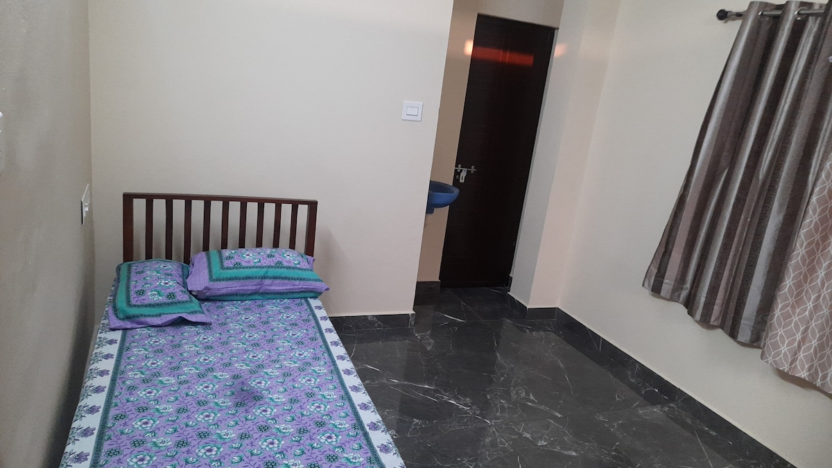 Velkommen til det perfekte oppholdet i Guruvayur! Denne godt vedlikeholdte studioleiligheten tilbyr et rent, fredelig og privat sted bare noen minutter unna det berømte Guruvayur-tempelet. Ideell for folk som reiser alene, par eller små familier som besøker tempelet eller utforsker byen. For gjester som kommer uten privat drosje – vi tilbyr gratis henting i en bil fra leiligheten vår til templet tidlig om morgenen mellom kl. 03.00 og 07.00.