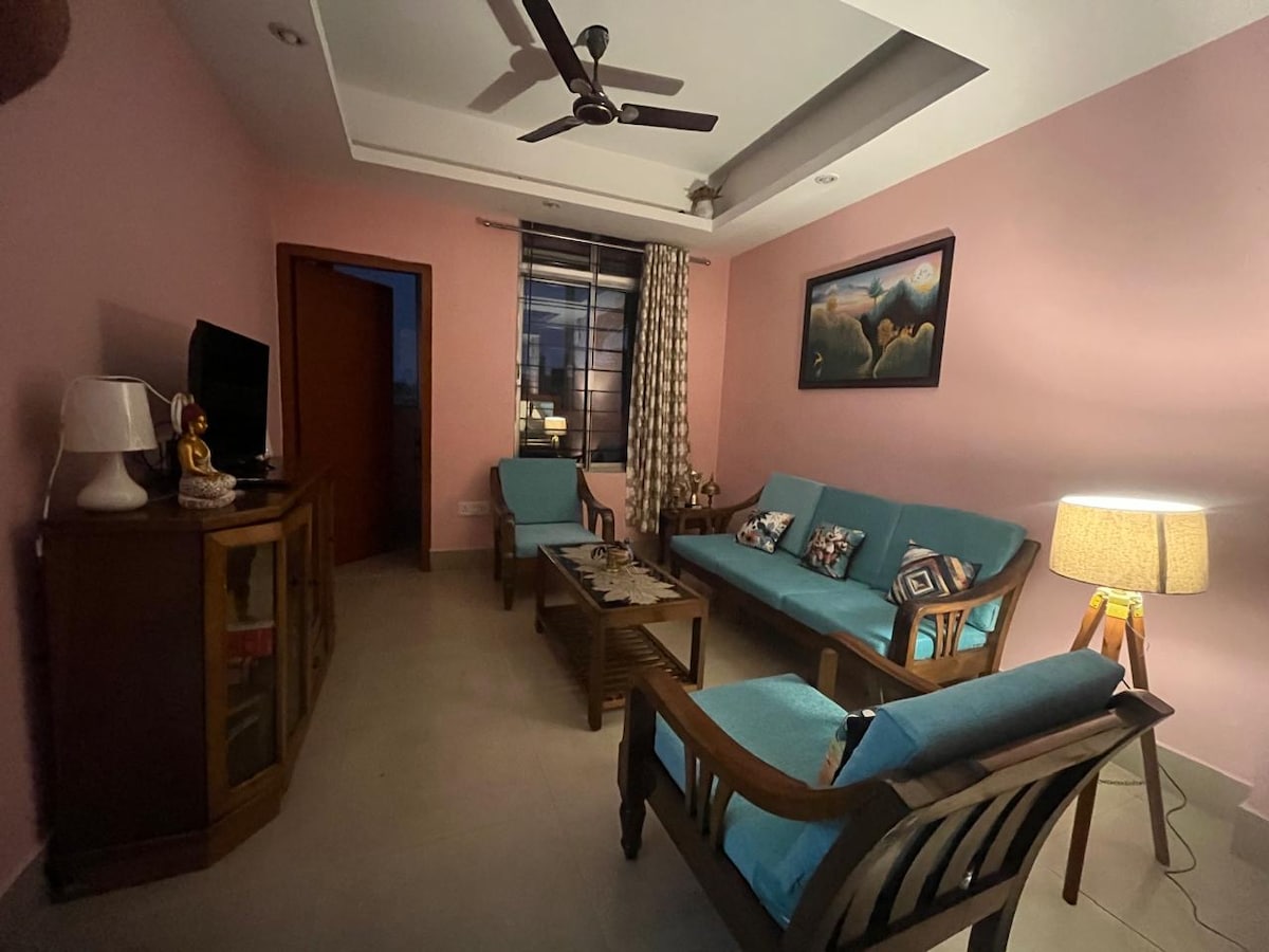 Stedet består av en hall, et soverom med aircondition og tilknyttet bad (med geysir), balkong, en spisestue og et fullt funksjonelt kjøkken. Trådløst nettverk tilgjengelig. Området er godt betjent av Blinkit og Instamart, og matleveringsapper og taxitjenester fungerer effektivt. MERK – den ligger i andre etasje og er tilgjengelig via en felles trapp. Vi har IKKE heis. Parkering tilgjengelig for bil/sykkel.