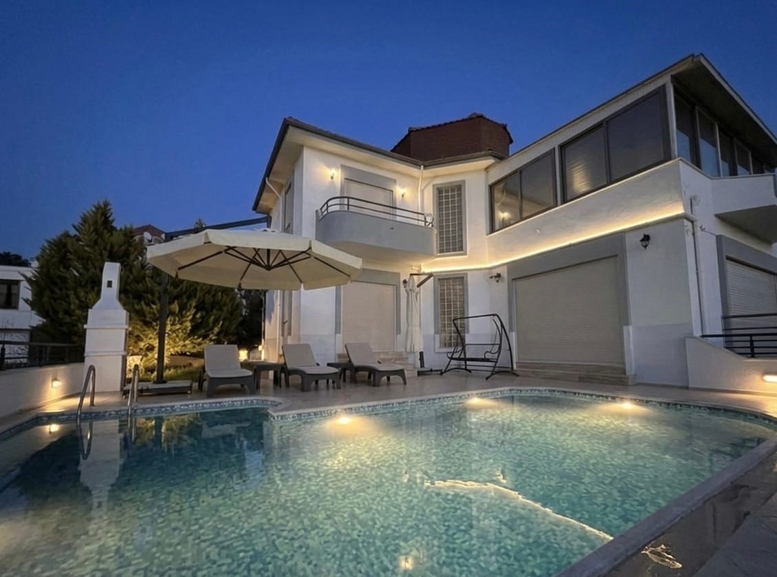 Du vil kunne oppleve fred ved å se alle nyansene av grønt i bassenget vårt (saltvann), boblebad, valnøtt og oliventrær og forskjellige frukttrær i utsikten på forsiden av villaen vår, som er dekket av oliventrær. Mens morgenene dine er ledsaget av lyden av haner, kyllinger, nattergaler og ekorn, vil svalenes danser gi deg et visuelt festmåltid.