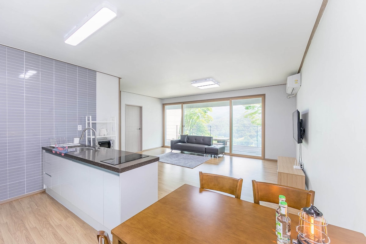 Slapp av med hele familien i dette rolige hjemmet. Huset vårt ligger 3-5 minutter unna med bil fra Samsung Palace * Valley - 400 meter å gå * Zhongshan - 25 minutter med bil. (Bra for fotturer i Cheonwangbong) Klokken er tre på rommet og klokken elleve på rommet. Det er herregårdstid etter kl. 22.00. Vennligst avstå fra støy og grillfasiliteter! * Kostnad for grill - 20.000 vunnet * Svømmebasseng er tilgjengelig om sommeren