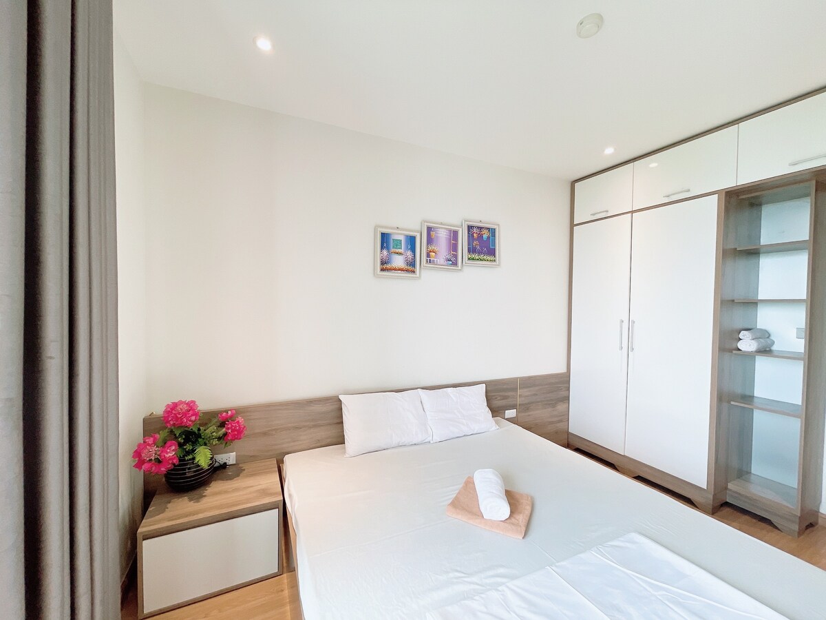 Leiligheten ligger i det naturlige vidunderet Ha Long Bay, og tilbyr et luksuriøst og privat, fredelig feriested. Det moderne designet er blandet med havets skjønnhet. Leiligheten er fullt utstyrt med fasiliteter av høy klasse: et sofistikert soverom, en stor åpen stue, et moderne kjøkken og en poetisk balkong med utsikt over bukten. Internasjonal standardtjeneste, som gjør hver ferie til en reise. – Vi har en seksstjerners båt for å besøke Ha Long Bay til den beste prisen – Ambasado og Lanuna. Etter bestilling kan du kontakte oss for referanse.