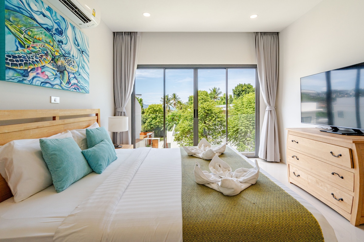 Opplev å leve som en lokalkjent! Denne nydelige villaen ligger bare et steinkast unna stranden i et veldig rolig område, men den ligger også bemerkelsesverdig nær byen, restauranter og uteliv. Dette huset er en sjelden mulighet med daglig rengjøring og strøm inkludert. Det er ingen tilleggsgebyrer! Villaen har en stor balkong/terrasse vendt mot lagunen, øyene i Koh Samui og Ang Tong nasjonalpark. Tilgangen til huset er helt privat. Og vi har akkurat ferdigstilt oppussingen!