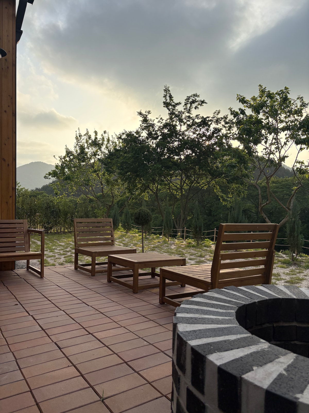 🎁Åpen kerosenvarmetjeneste🎁 Dette er et fantastisk overnattingssted med utsikt over skog og fjell i en liten landsbygd. Ved siden av natteskogen er det et lite hus hvor du kan slappe av, og et telt hvor du kan kjenne campingatmosfæren. Dette stedet er kun for ett team. Det er et sted hvor du kan hvile, drikke te, lytte til musikk, lese bøker og se på film. Dette er et nytt trehus som ble ferdigstilt i november 2025. Det er en liten loftsbygning av studio-typen. Det er en grillplass i hagen og et telt hvor du kan spise og slappe av. Vi gir deg en enkel frokost kl. 08.00. Det er en Sanggim-skog som ble opprettet i Silla-epoken, ti minutter unna med bil. Det er en god park å ta en spasertur og helbrede seg i Millenniumskogen. Skyland ligger 15 minutter unna med bil. Ta monorailen. Hvis du går opp til toppen av Daebongsan, er landskapet veldig bra. Zip-linjen er den lengste i landet. Det er spennende. Jirisan er i nærheten, så det er mange ting å se og nyte.