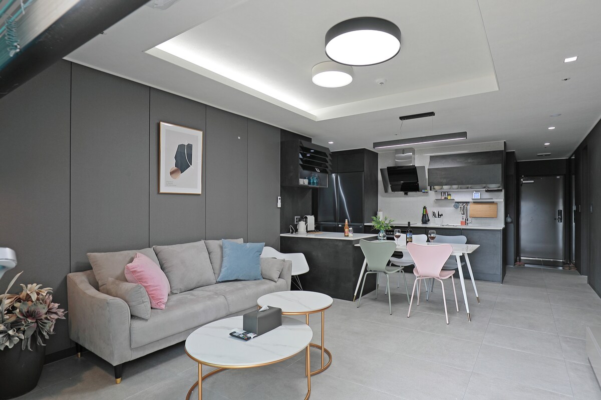 Haeundae Wave | Opphold i førsteklasses bolig Haeundae-sjøen ligger fem minutter unna, Haeundae-bølgen grenser til det blå havet. I det øyeblikket du åpner døren og går inn, Du blir ønsket velkommen av en spesiell duft som bare finnes her. Alle rommene har en privat terrasse hvor du kan nyte havet og himmelen foran deg. Hvert rom tilbyr ny spenning med forskjellige eksklusive interiører og følelser. Til og med koselige sengetøy i hotellklasse som du kan kjenne så snart du slapper av. I et nøye forberedt rom Oppdag litt ekstraordinær hvile utenfor hverdagen. Haeundae Wave er med deg for å gjøre turen dypere og vakrere. Beliggenhetsinformasjon * 5 minutters gange til Haeundae hvite sandstrand * Syv minutter til fots fra Haeundae stasjon. * Gratis parkering/ladestasjon for elektrisk kjøretøy (gratis parkering tilgjengelig, men utenfor parkeringsplassen når den er full/ingen parkeringsavgift støttes). * Lett å komme seg rundt i Haeundae og Gwangalli.