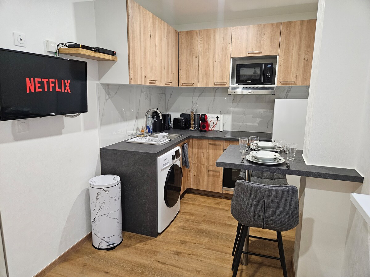 Stor og lys 2-roms leilighet med terrasse vendt sørover og 2 parkeringsplasser, beliggende i sentrum av Haguenau. Klassifisert 3-stjerners 🌟 Et vannsportssenter ligger i gaten med svømmebasseng, sauna, hammam og boblebad. Den ligger i 1. etasje uten heis i et boligkompleks, har et soverom og en stor stue med en sovesofa. Kjøkkenet er fullt utstyrt og toalettet er separat. Badet er utstyrt med dusj og vaskemaskin.