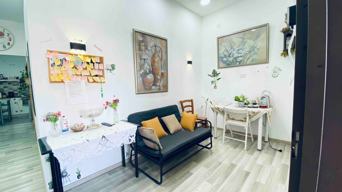 Nataly Apartment ligger like ved sjøen, et rolig kunstnerisk sted sentralt. En sjarmerende liten kjellerleilighet i loftstil, to minutters gange fra stranden, i nærheten av en promenade med fantastiske solnedganger og en taubane som går opp til Green Carmel. Nataly-leiligheten ligger i et fredningskompleks som er et av de vakreste i området. Leiligheten er godt utstyrt og fylt med kunstverk og håndverk som gir leiligheten atmosfære og sjarm.