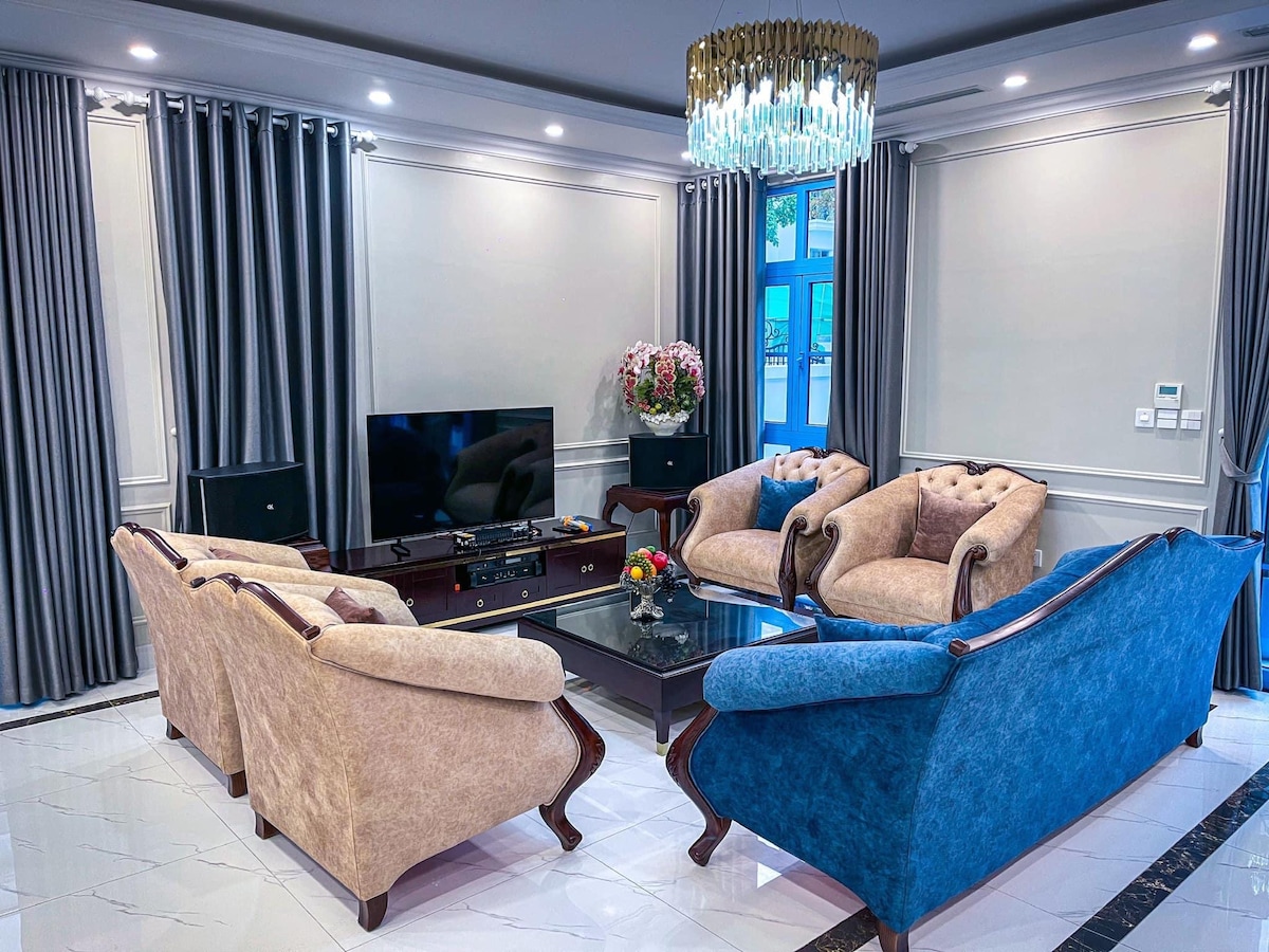 Vår villa med 6 soverom og 5,5 bad med aircondition ligger bare 1 minutts gange til Bai Chay-stranden, med enkel tilgang til toppbesøkte turiststeder (Halong International Cruise Port, Sunworld Halong Complex, Ha Long Night Market,..) Vi tilbyr høyt privatliv med fleksible søvninnstillinger for turen din med familier, venner eller bedriftsopphold med et eksklusivt preg og en rolig kyststemning. Privat transport Dagscruise i Halong. Billetter til Sunworld Park. Cateringtjenester. Catba reiseruter.