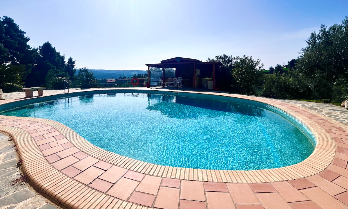Rolig overnatting for avslappet familieferie. 10 minutters gange fra havet (i havet ingen steiner, ren strand). Vi er alltid glade for enhver gjest, og vi kan hjelpe deg med spørsmål. Vi gir deg en stor hage, utendørs grill, basseng for barna , nye møbler, sovesofa, gratis parkering, rolig beliggenhet ved siden av olivenlunder. Vi ser frem til å besøke oss! Halkidiki har mange steder å reise, vi vil fortelle deg om de mest utrolige!