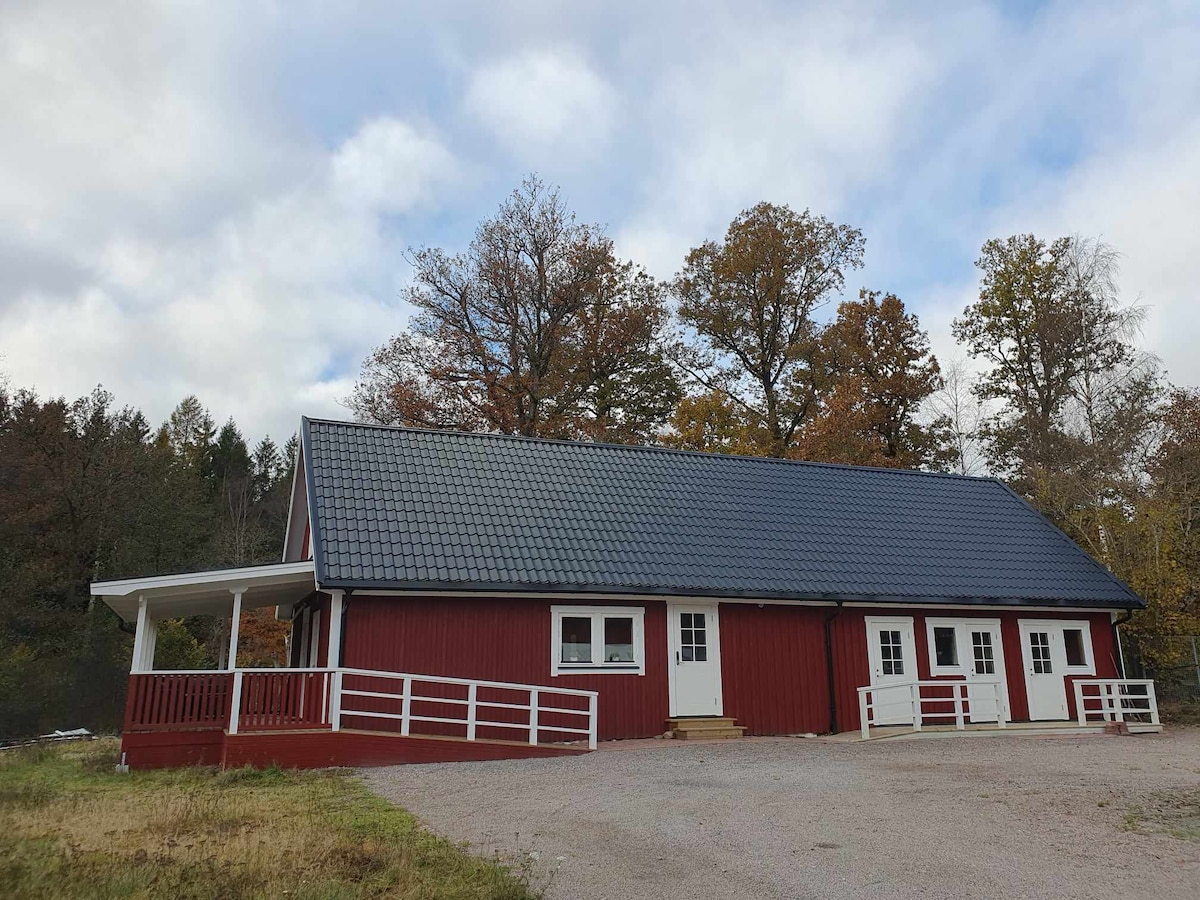 Rett ved Vemmentorpa-sjøen finner du denne røde, sjarmerende hytta. Her kan du slappe av og nyte innsjøen samt drømmende eventyrskoger. Ta en spasertur rundt innsjøen eller følg noen av flere stier inn i skogen. Hvis du ønsker å svømme, kan du alltid ta en svømmetur i det fine badeområdet. Her bor du på 71 kvm med soverom, kjøkken, bad og herlige fellesområder. Sett deg ned og kos foran bålet mens noen andre lager middag. Eller bare ta en kopp kaffe mens du ser ut over innsjøen.