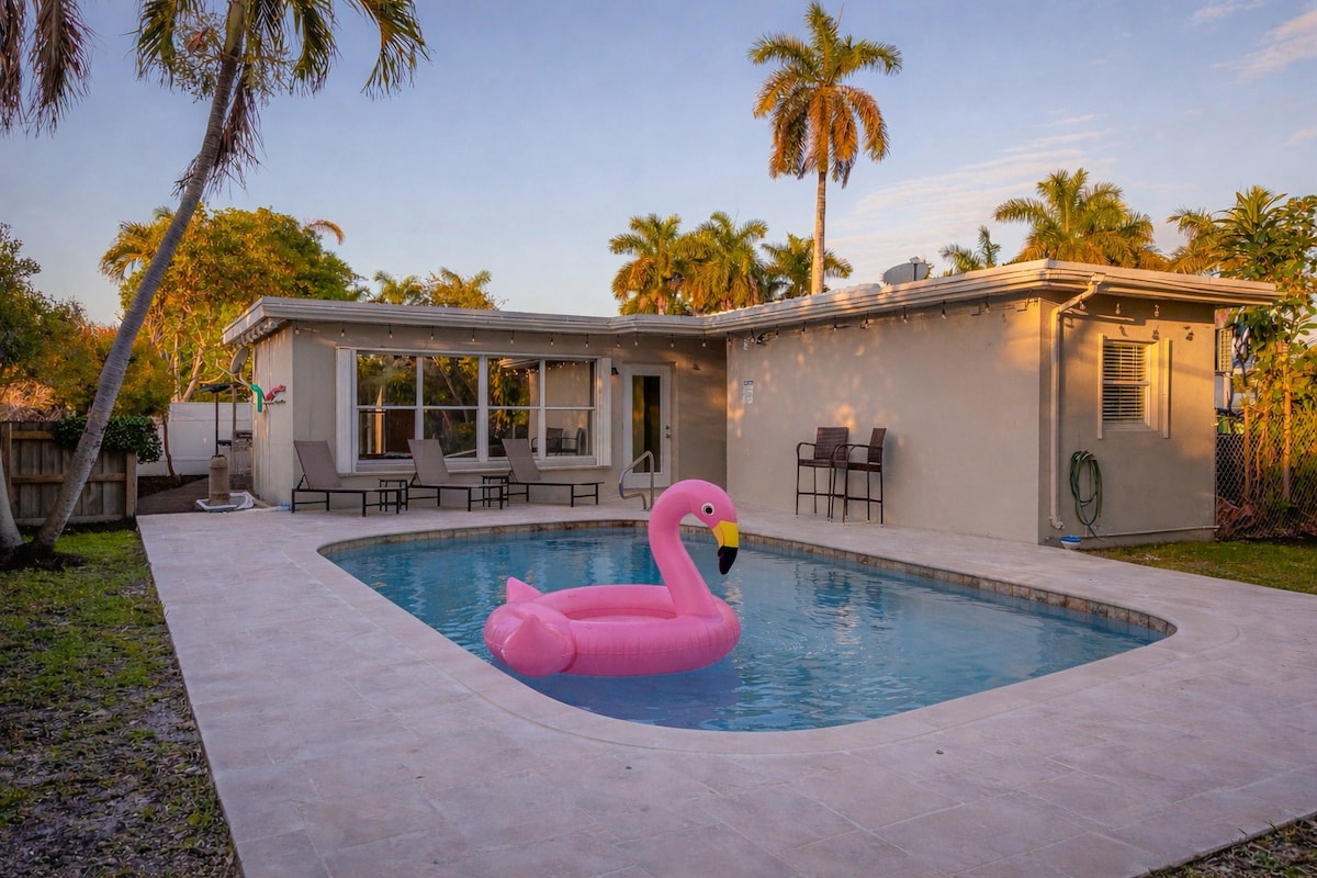 Located in the east Hollywood lakes neighborhood our home is only 2 blocks away from the amazing Hollywood Beach broad walk, and 3 Minutes from downtown. Amazing waterways surround our neighborhood, perfect for sunset walks. Our home is Super clean and Updated. Enjoy a big fenced in yard, pool, ping pong table, BBQ Grill, gas range, and a fully equipped kitchen. You will also enjoy our Amazing outdoor furniture and a 75 inch smart TV you can stream your favorite shows to. Perfect for relaxation