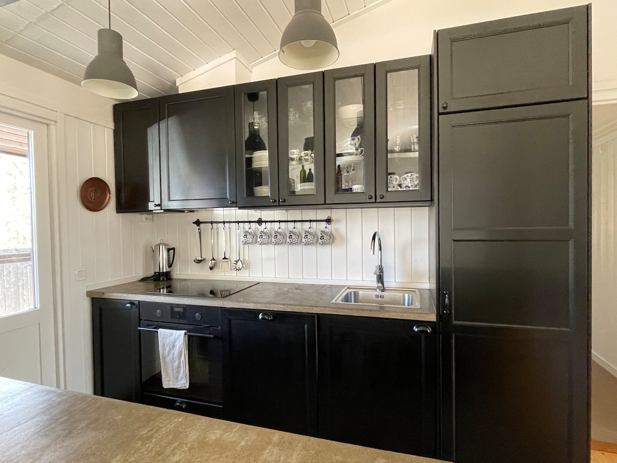 Nybygd villa på 100 kvm i to plan. Åpen planløsning med kjøkkenavdeling, spiseplass, stue med hjørnesofa og TV. Elegant bad med marmorbank, to servanter. Vaskemaskin og tørketrommel. I tillegg en komfortabel dobbeltseng 160 cm bred og en 90 cm ekstra seng. Hvis dere er to personer og ønsker separate senger, påløper det et gebyr. Stor terrasse med morgensol og utsikt over skogen og sjøutsikt. Innglasset veranda i første etasje med utsikt over elven Rosenfors. Egen brygge med båt.