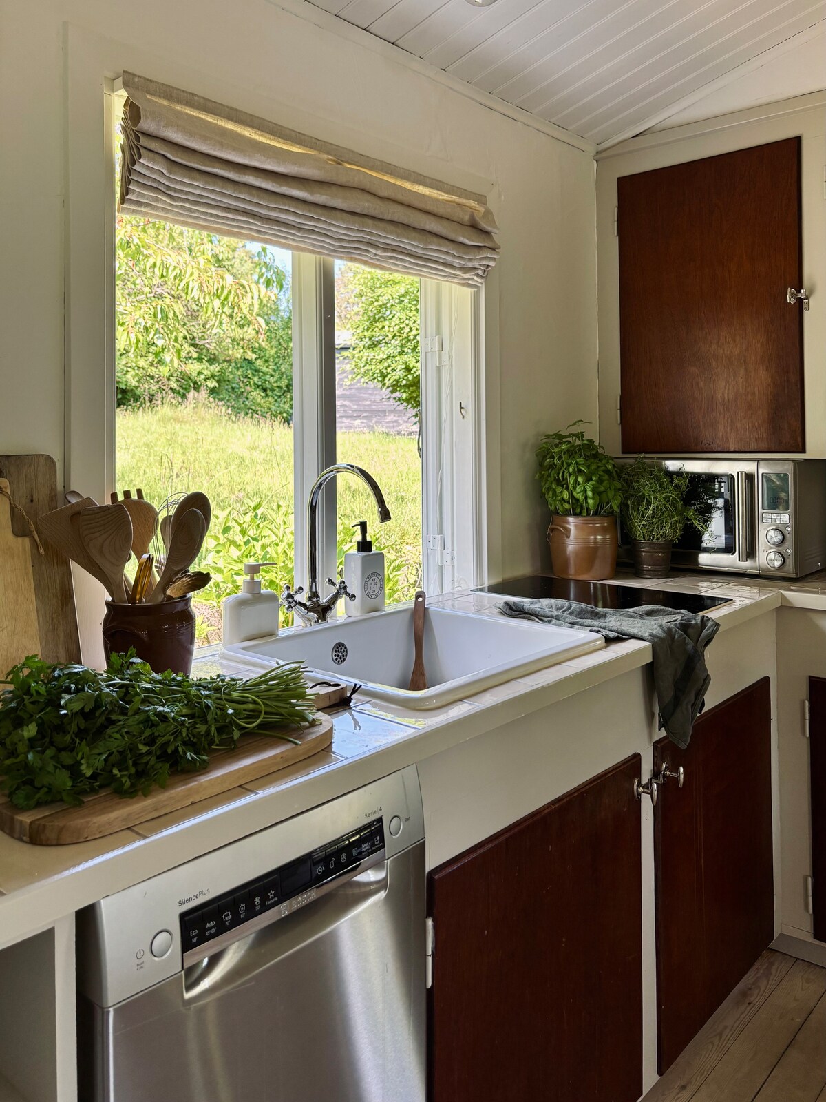 Skogen som nabo og utsikt over åkrene. Det perfekte fristedet langt fra støy og oss, nær stranden og aktiviteter. Det er 4 soverom og en romslig hems. Det er et stort bad, samt et toalett som er tilgjengelig utenfra, med tilhørende utendørs dusj. Kjøkkenet er et snekkerkjøkken med Miele hvitevarer. Hopp i villmarksbadet og ta en tur i saunaen. Huset har totalt 5 trådløse høyttalere. I hjørnet av hagen er det anlagt en bålplass med en huske hvor hele familien kan lage marshmallows over bål