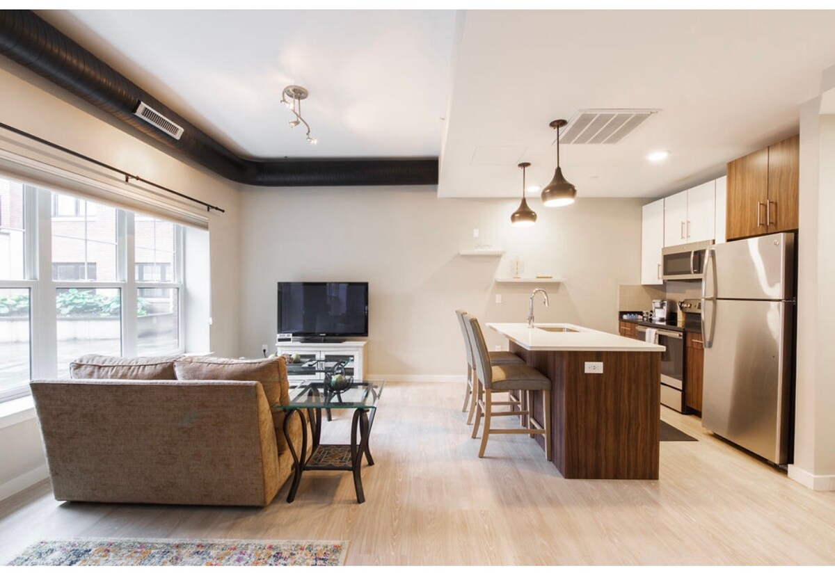 Denne nydelige leiligheten, som ligger i en helt ny luksusbygning i sentrum av New Havens historiske sentrum, tilbyr uovertruffen komfort, service og fasiliteter. Du kan se en film på en 65" HDTV, jobbe i ett av fem felles kontorer eller slappe av ved bassenget med griller og strandhytter. Høydepunkter: • tilgang til Yale til fots • grundig rengjøring før hver gjest • Kaffe, rent sengetøy og basisartikler til badet. • døgnåpent treningssenter • solterrasse på taket + griller • underholdningslounge med bowlingbane