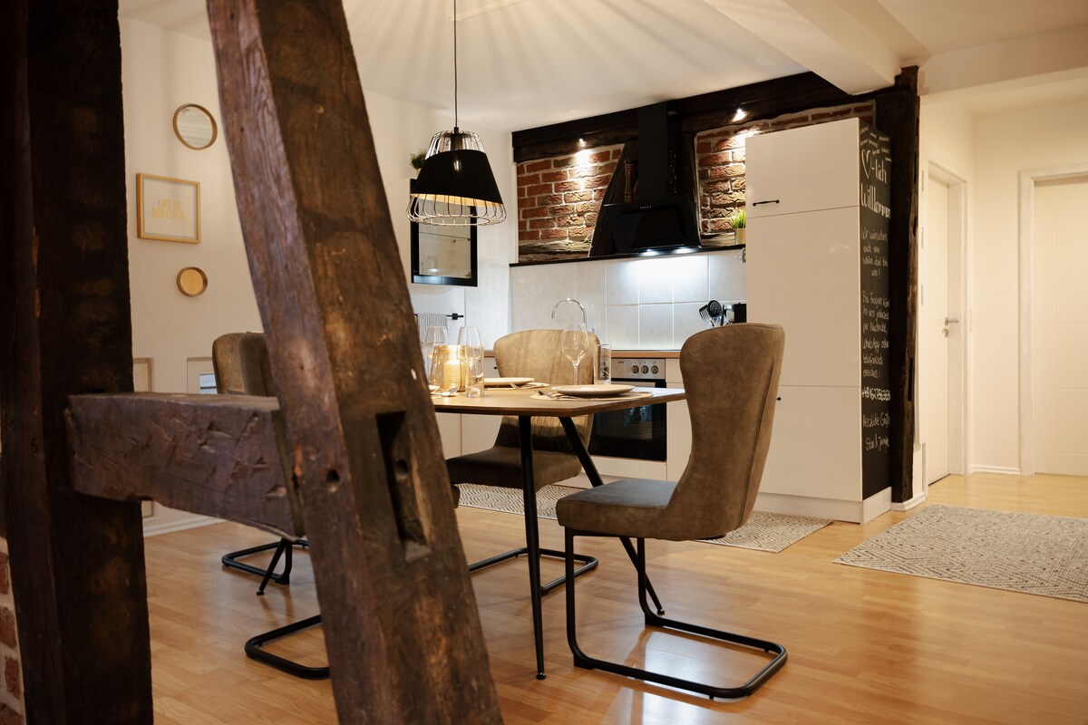 Velkommen til vår nyrenoverte og sjarmerende leilighet i hjertet av Hameln! Den koselige overnattingen har plass til opptil fire personer og er ideell for alle som leter etter et sentralt og komfortabelt sted å bo. Moderne gulvvarme og dusjrom, en stor TV, gratis trådløst nettverk og et fullt utstyrt kjøkken sikrer det høyeste nivået av komfort. Innenfor gangavstand kan du nå gamlebyen med restauranter, kafeer og attraksjoner. Vi ser frem til å ønske deg velkommen som gjest!