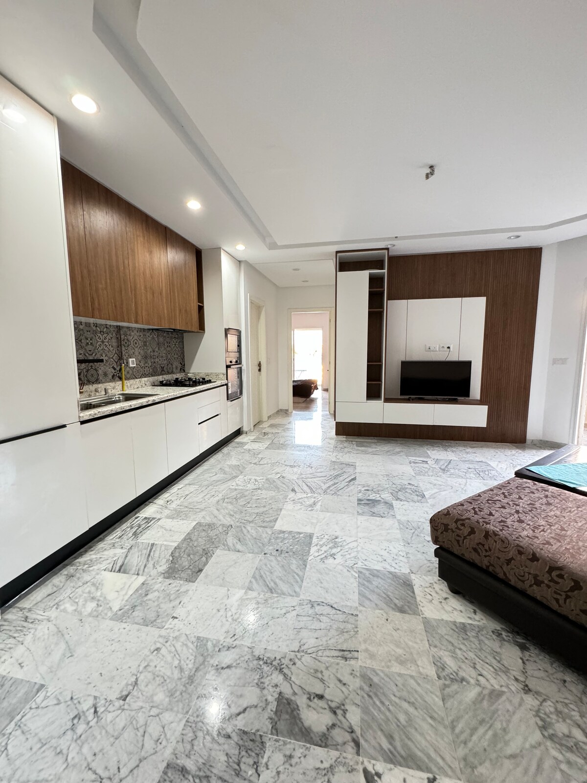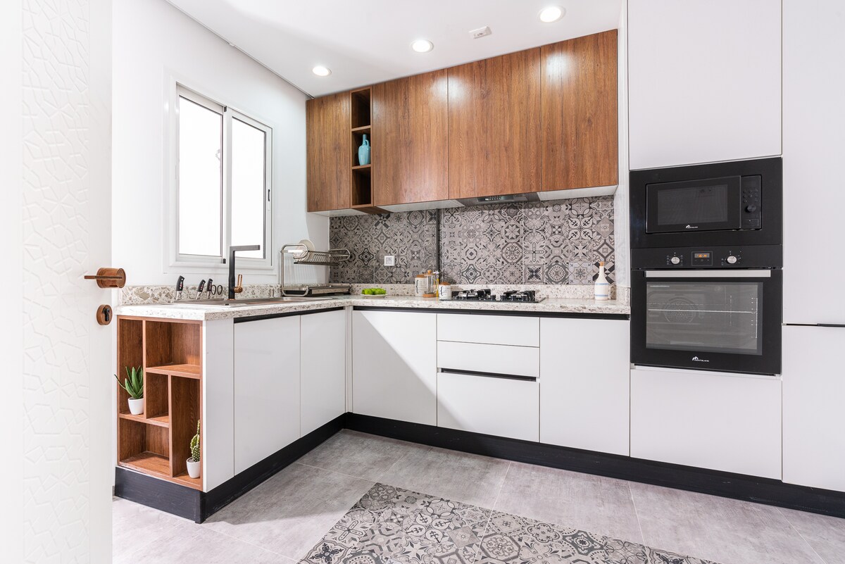 Denne fullt utstyrte ettromsleiligheten tilbyr moderne og komfortable omgivelser, perfekt for opphold med familie, venner eller som par. Når du kommer inn i leiligheten, finner du: To romslige soverom med oppbevaring. En lys stue med smart-TV og klimaanlegg Et fullt utstyrt kjøkken (kjøleskap, stekeovn, mikrobølgeovn, redskaper). Ett moderne bad Sentral beliggenhet, nær kafeer, restauranter og souken En kort spasertur til stranden Trådløst nettverk med høy hastighet og klimaanlegg i alle rommene