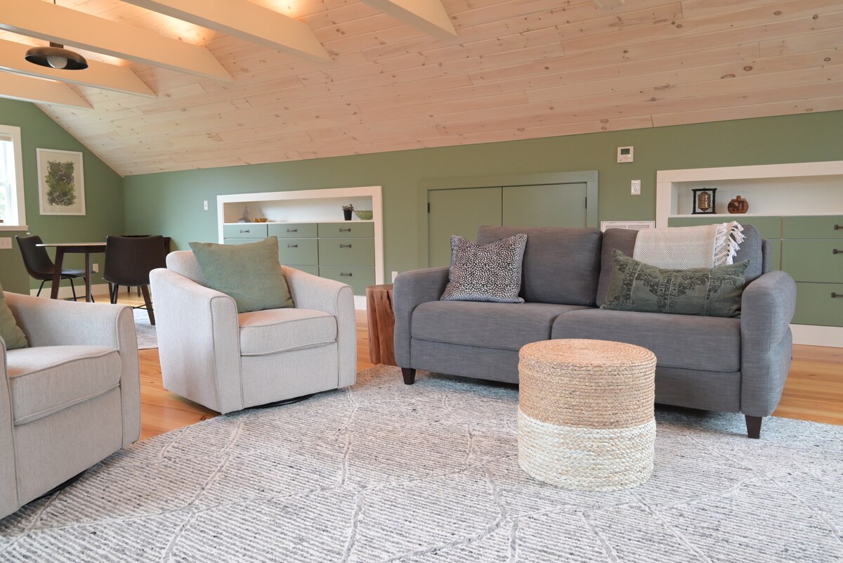 VIKTIG: Les hele beskrivelsen om de miljøvennlige retningslinjene og klikk på «KONTAKT VERTEN» i stedet for å reservere. Jeg svarer veldig raskt på forespørselen din. Takk for omtanken! En unik studio, loftsaktig, omgitt av vakre hager, en kort spasertur til sentrum og Smith College. Perfekt for å besøke de fem høyskolene, delta på bryllup, avgangseksamener, workshops, skrive og forskning. Nær tur- og sykkelstier.
